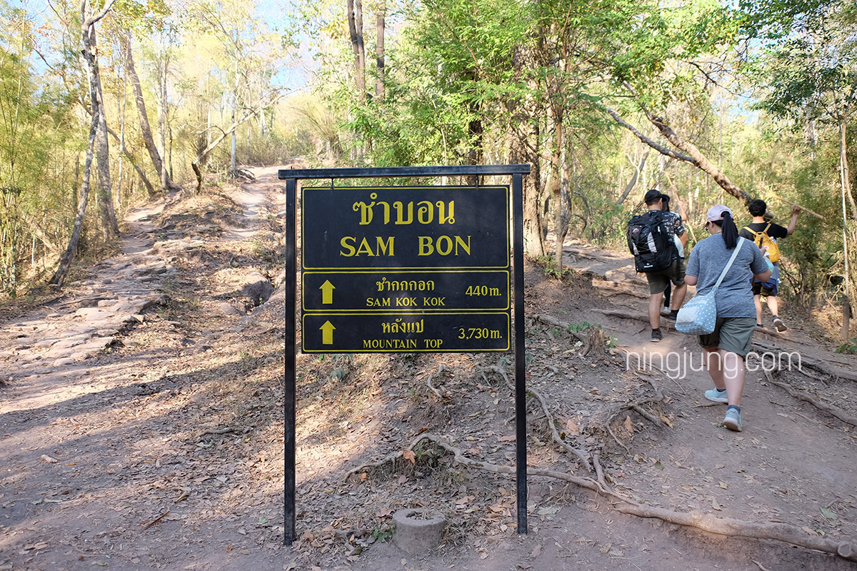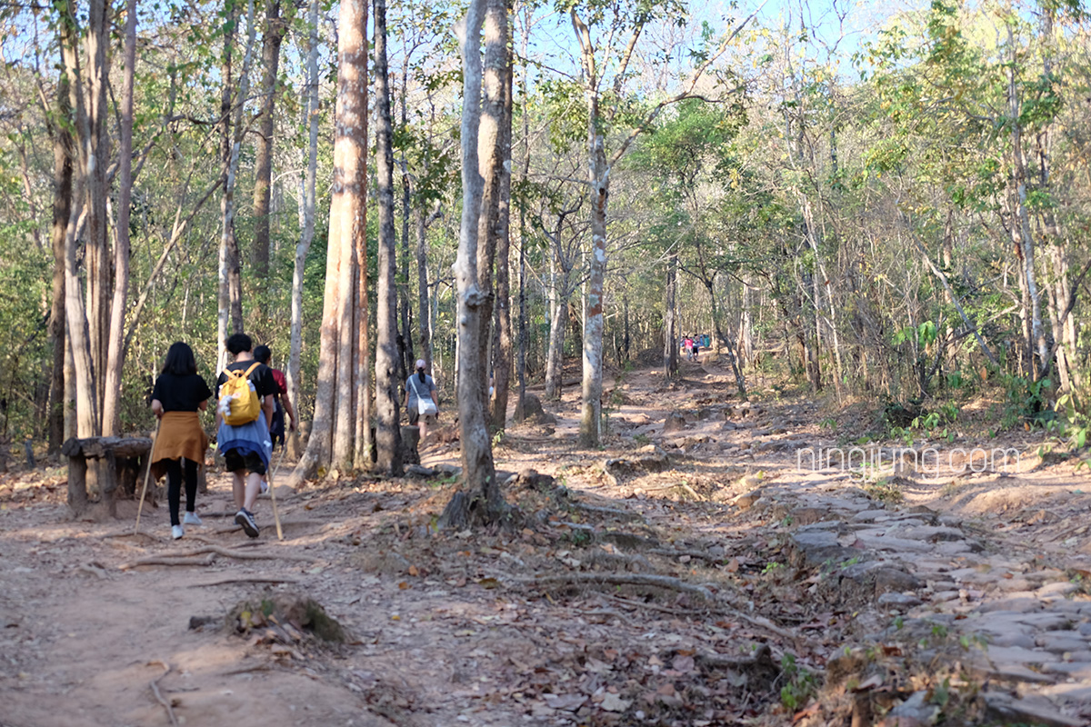 8.10 – 8.30 น. ซำแฮก – ซำบอน (700 ม.) ช่วงนี้จากในรูปคิดว่าน่าจะชัน แต่พอเดินจริงๆ ค่อนข้างสบาย เป็นทางราบซะส่วนใหญ่ มีน้องๆ นักศึกษามาเที่ยวกันเยอะเลย ทำให้บรรยากาศสดชื่น (มากกว่ามีลุงกับป้าเดินกันอยู่ 2 คน 555)