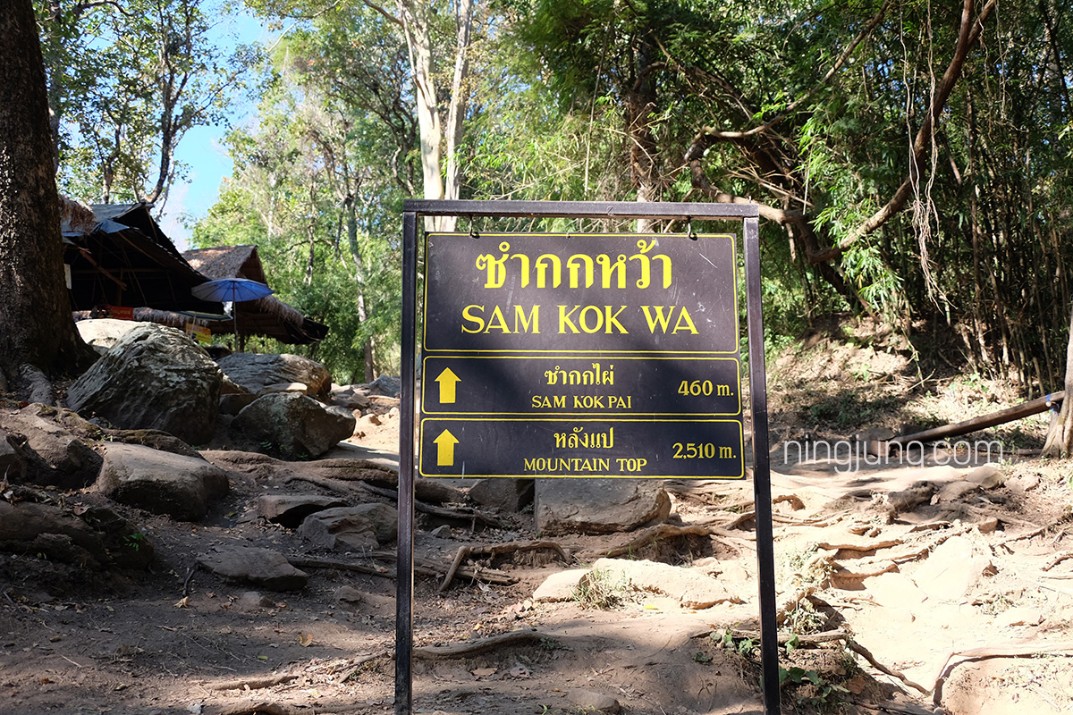 จากทางเข้า เรามีจุด check point ทั้งหมด 11 จุด เกือบทุกจุดมีที่นั่งพัก และอาหารขาย (กินได้ทุกซำ ถ้าไม่หวั่นกับราคา และไม่กลัวจุก 555) เช็คจากแผนที่ที่ซื้อมาจากอุทยานอีกที (ภาพที่ลงนี่ถ่ายหลังจากกลับมาแล้ว กระดาษเปื่อยเป็นชิ้นๆ) ระยะทางจากที่ทำการอุทยานไปจนถึงหลังแป 5.5 กม. และเดินทางราบอีก 3.5 กม. จะถึงวังกวาง ซึ่งเป็นจุดที่ทำการ บ้านพัก ลานกางเต๊นท์ และร้านค้าต่างๆ