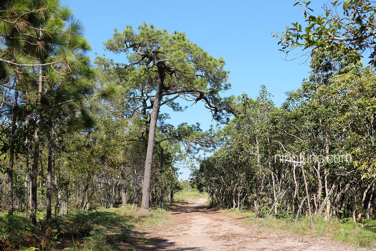 ประมาณ 5 โมง เริ่มเดินไปผาหมากดูก นักท่องเที่ยววันนี้ขึ้นภูกระดึงประมาณ 600 คน แต่ส่วนหนึ่งน่าจะไปอยู่ที่ผาหล่มสัก จุดที่ทุกคนต้องไป เดี๋ยวเราไปกันพรุ่งนี้ ระยะเดินจากวังกวางไปผาหมากดูกไม่ไกลมาก ประมาณ 2 กิโล ก็เดินประมาณเกือบครึ่งชั่วโมง