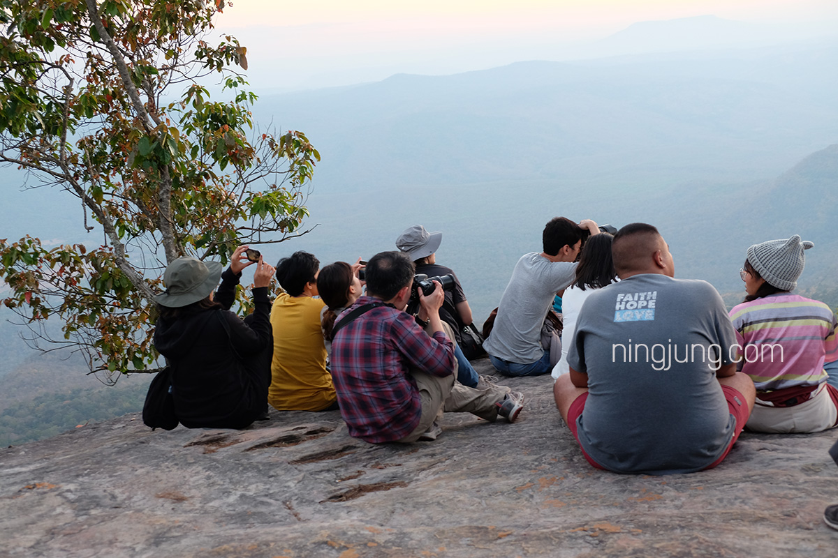 ณ หลังแป ขึ้นมาไชโยกับนักท่องเที่ยวอีกหลายคน ผลัดกันถ่ายรูปไปมา พักเหนื่อย กินน้ำ แล้วก็มานึกได้ว่าต้องเดินอีก 3 กิโลครึ่ง เฮ้อออออ นึกว่าถึงแล้วซะอีก