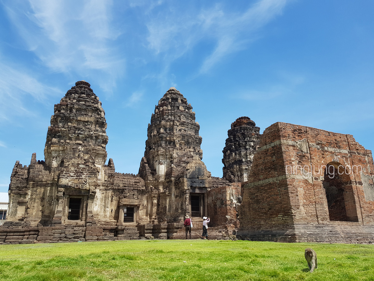 ออกเดินทางแต่เช้าตรู่ เพื่อนร่วมทริปส่วนมากเค้ารู้จักกันมาก่อน (จากการไปทริปคลื่นวิทยุนี้ด้วยกันมาหลายครั้ง) ส่วนมากเป็นผู้เกษียณอายุแล้ว ได้บรรยากาศไปอีกแบบ ไปถึงตัวเมืองลพบุรี ตามธรรมเนียมก็ต้องไปพระปรางค์สามยอดกันก่อน ฟ้าใส แดดแรง มีลิงมาทักทายเป็นระยะๆ เพื่อนร่วมทริปคนนึง เปิดการเดินทางด้วยการโดนลิงกัด วุ่นวายเล็กน้อย เห็นจำนวนลิงแล้วก็อดนึกไม่ได้ว่า เค้าทำให้มนุษย์เดือดร้อนเพราะมาระราน แย่งของกิน หรือมนุษย์ไปแย่งที่อยู่ที่หากินเค้ากันแน่
